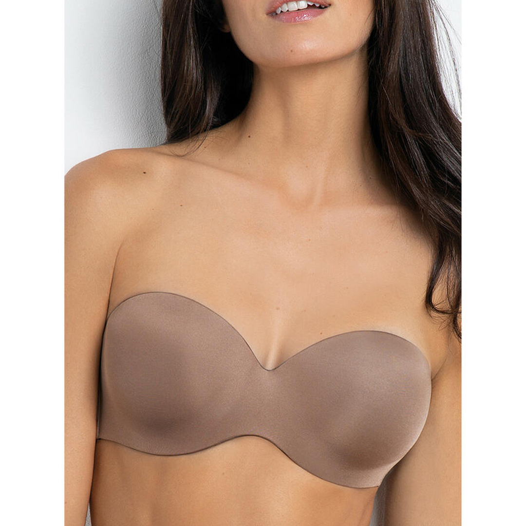 Il modello a fascia è dotato di stecche laterali per un sostegno aggiuntivo, mentre le spalline removibili consentono di adattare facilmente il capo alle esigenze dell’abbigliamento. Le cuciture interne siliconate assicurano che il reggiseno rimanga al suo posto anche senza l’uso delle spalline.