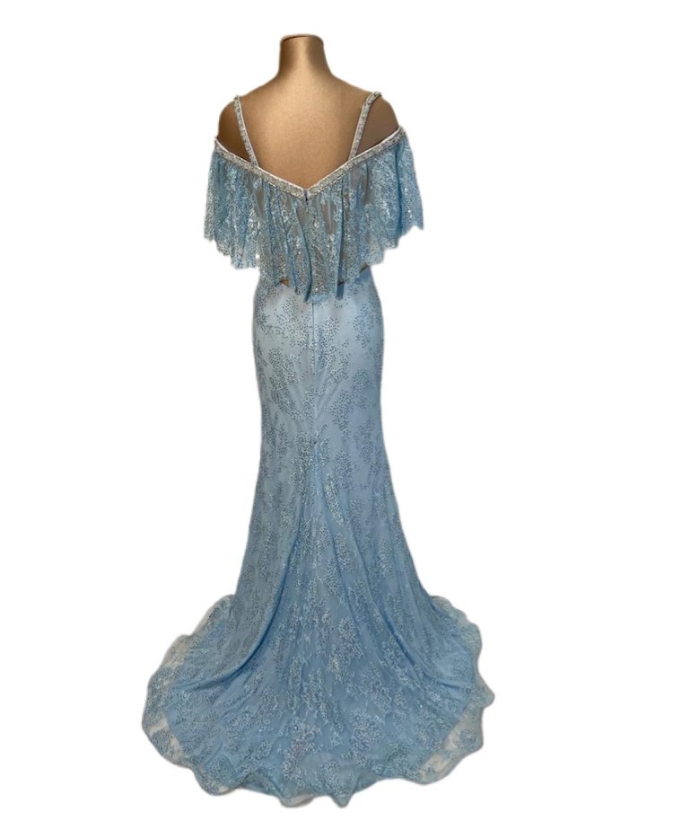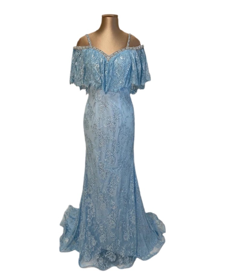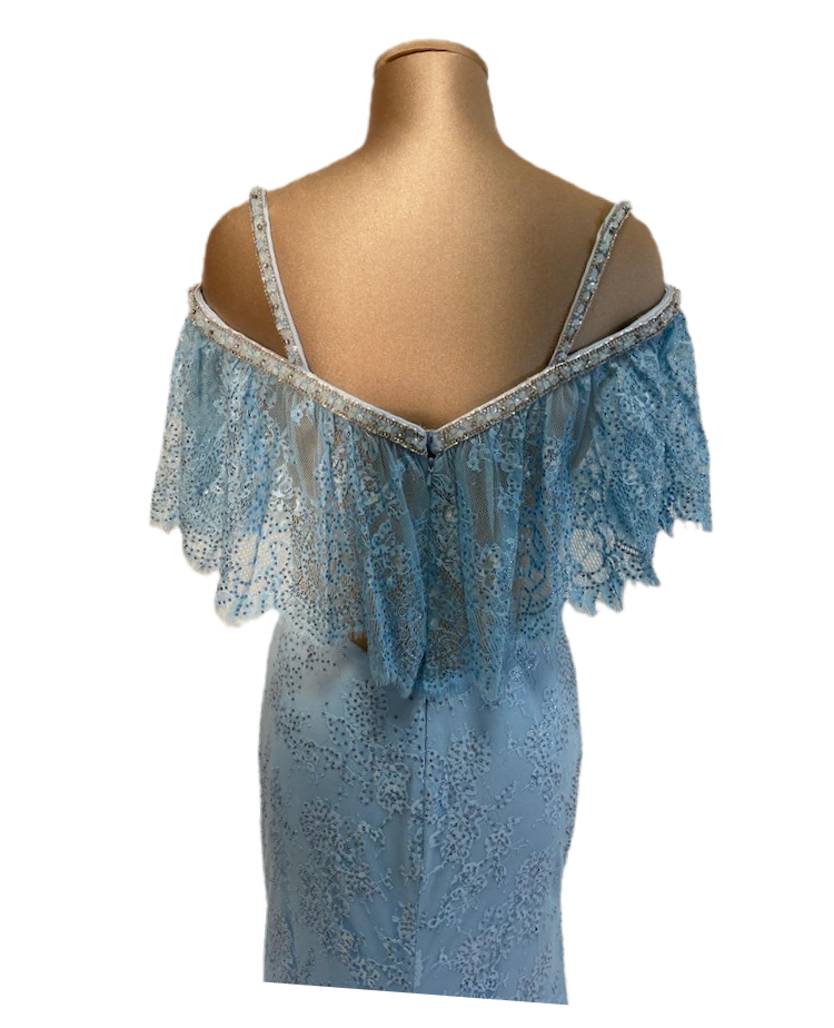 abito cerimonia a sirena formato completamente da pizzo morbido con swarovski applicati per tutto l’abito