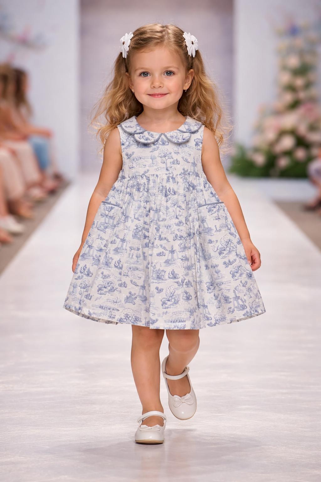 Realizzato in prezioso cotone batista, leggero e impalpabile, presenta una romantica stampa nei toni del bianco e dell’azzurro, ispirata allo stile classico.