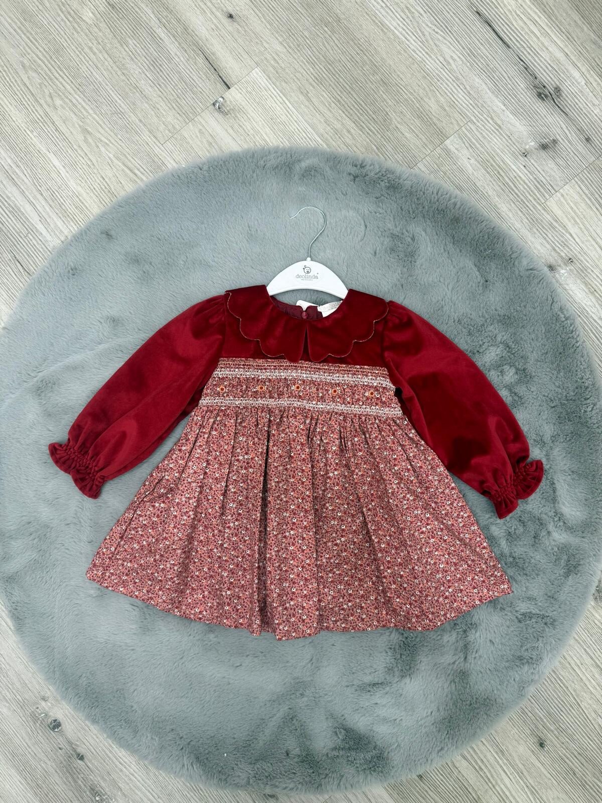 Abito Bimba Rosso e Fantasia Floreale – Eleganza Classica e Dettagli Ricercati Deolinda