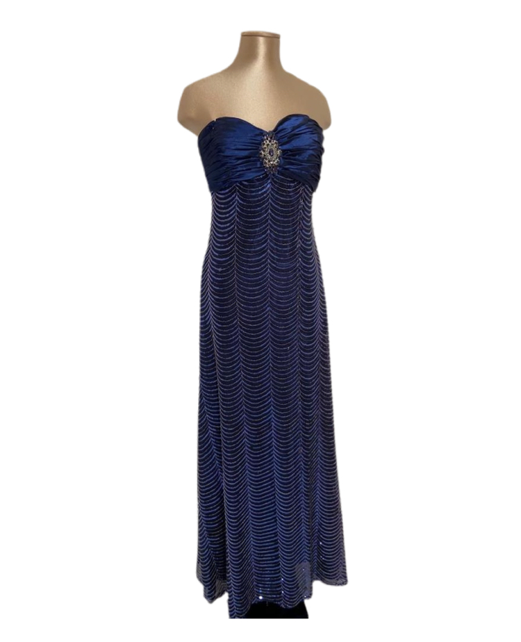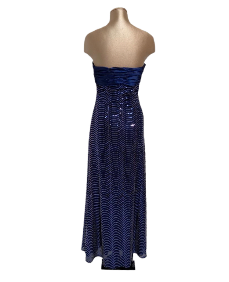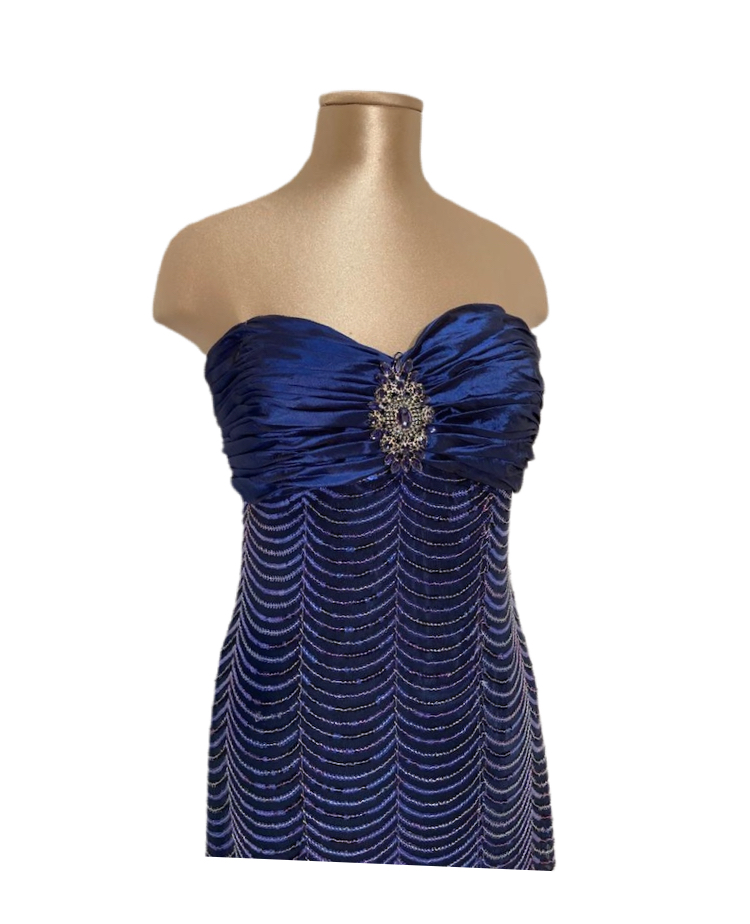 elegantissimo abito da sera con varie tonalit? del blu, luminoso per il tipo di lavorazione completamente formato da paiette.