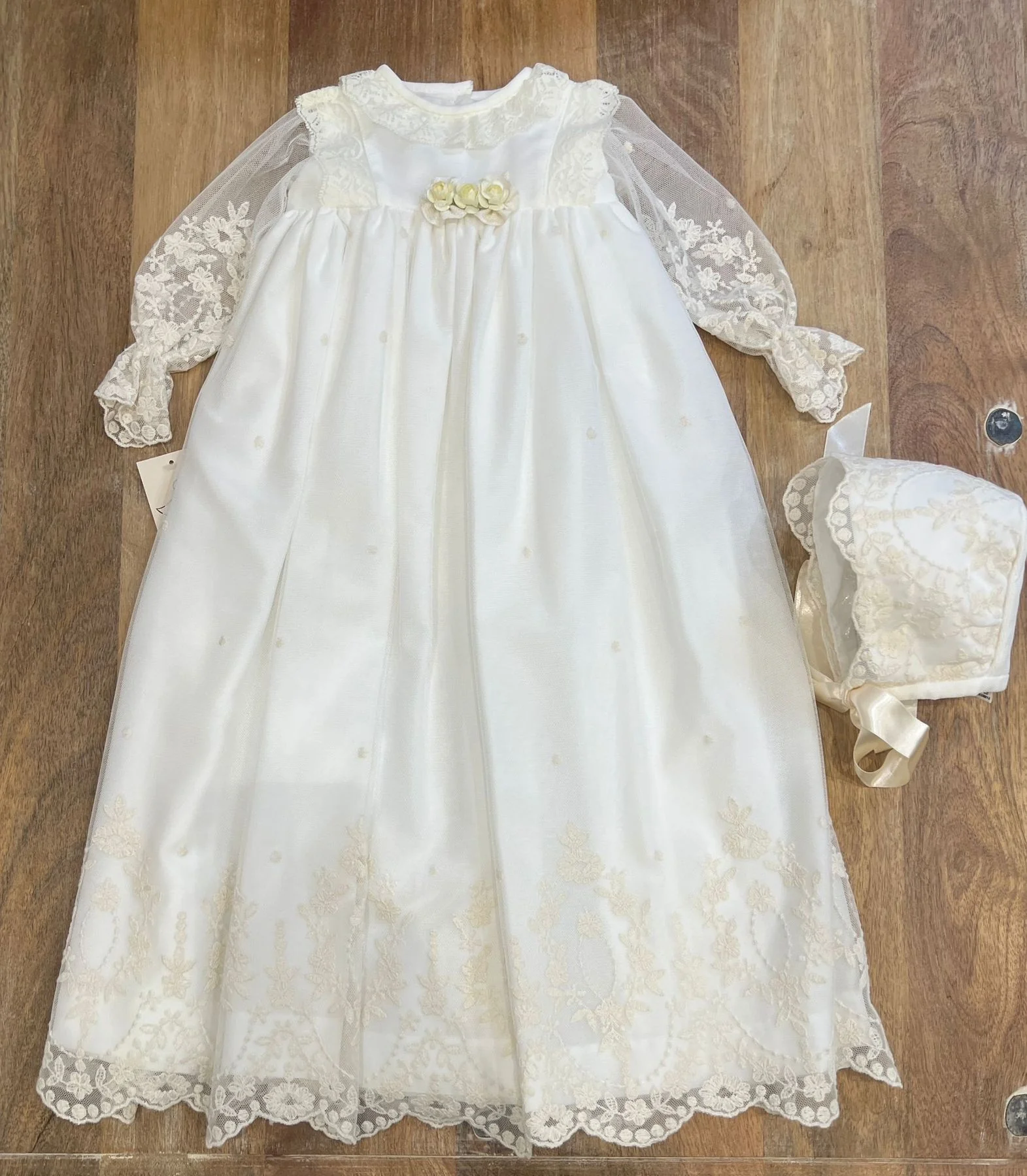 abito lungo con cuffia in organza