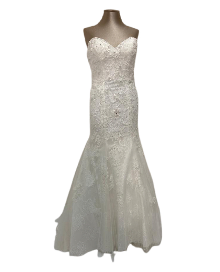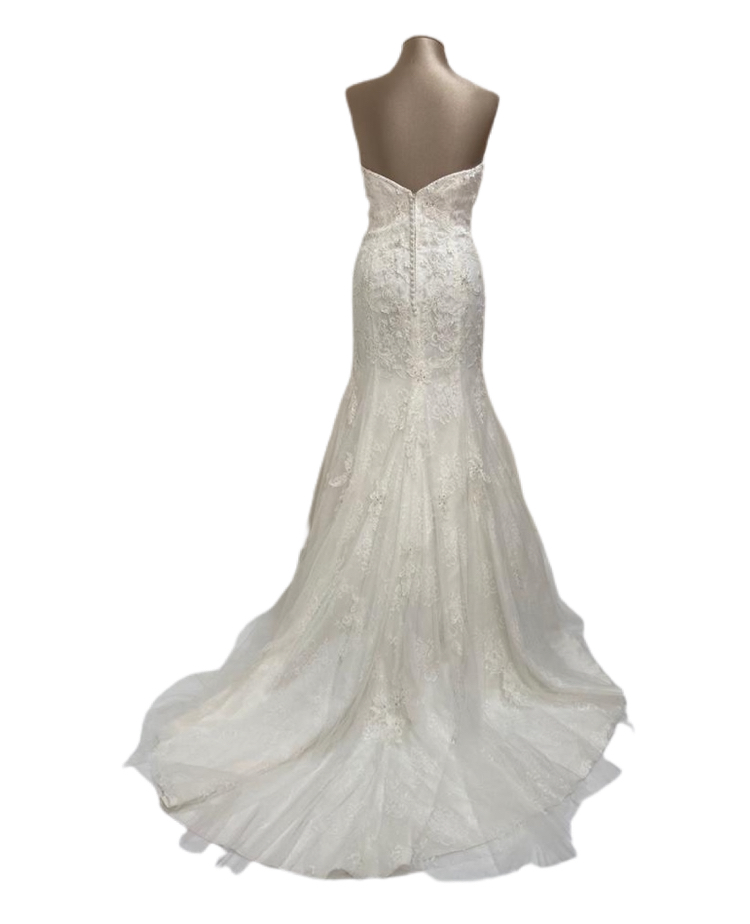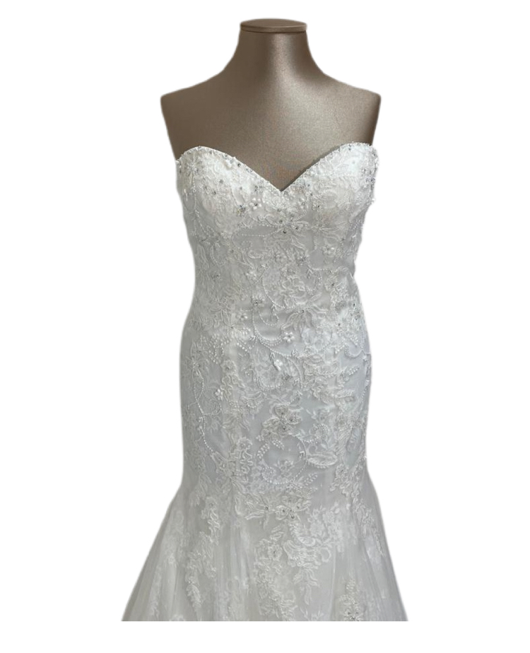 abito sposa mezza sirena completamente ricamato in pizzo e perline tinta su tinta