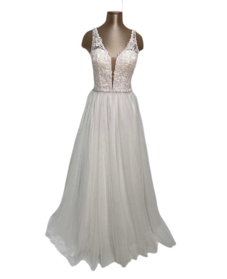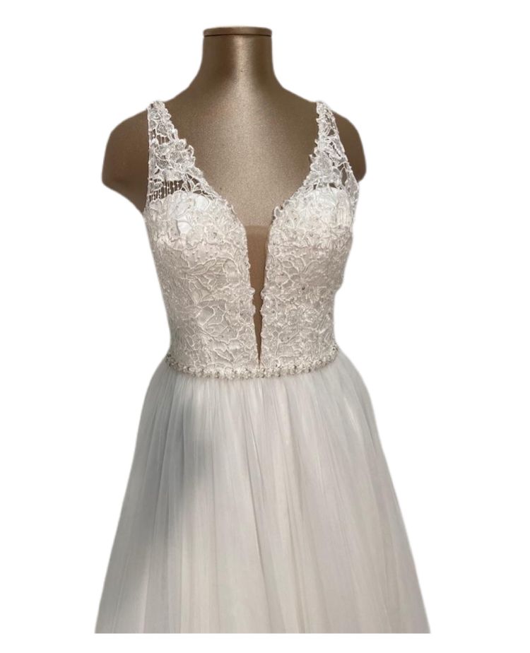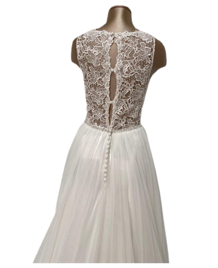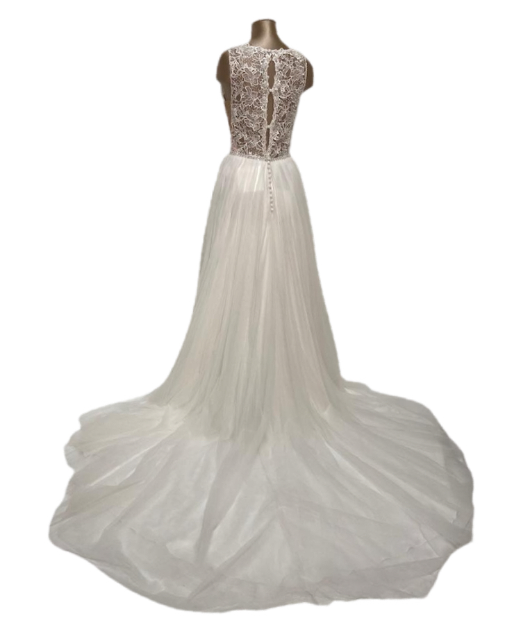 abito da sposa color avorio con gonna in tulle e corpetto in pizzo