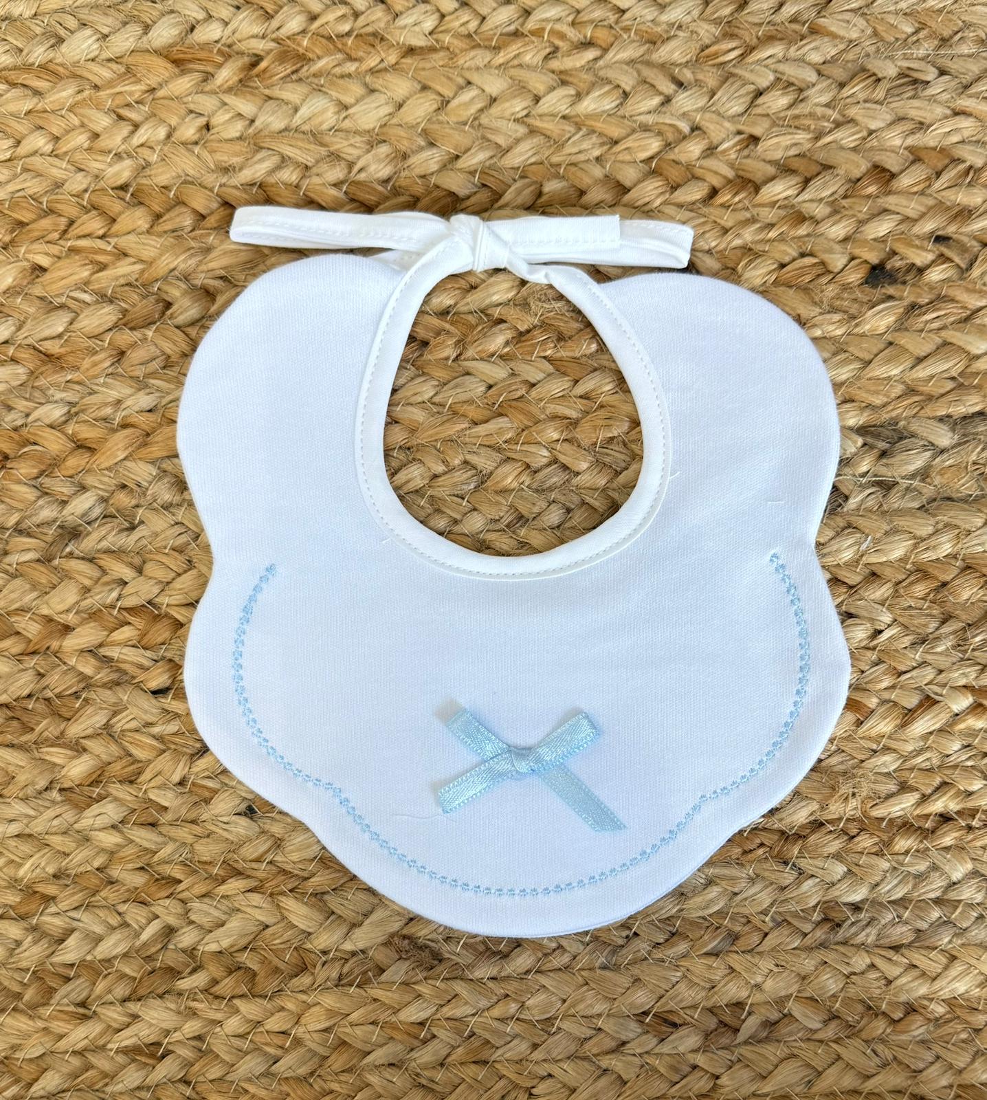 Bavetta in cotone con ricamo e fiocco