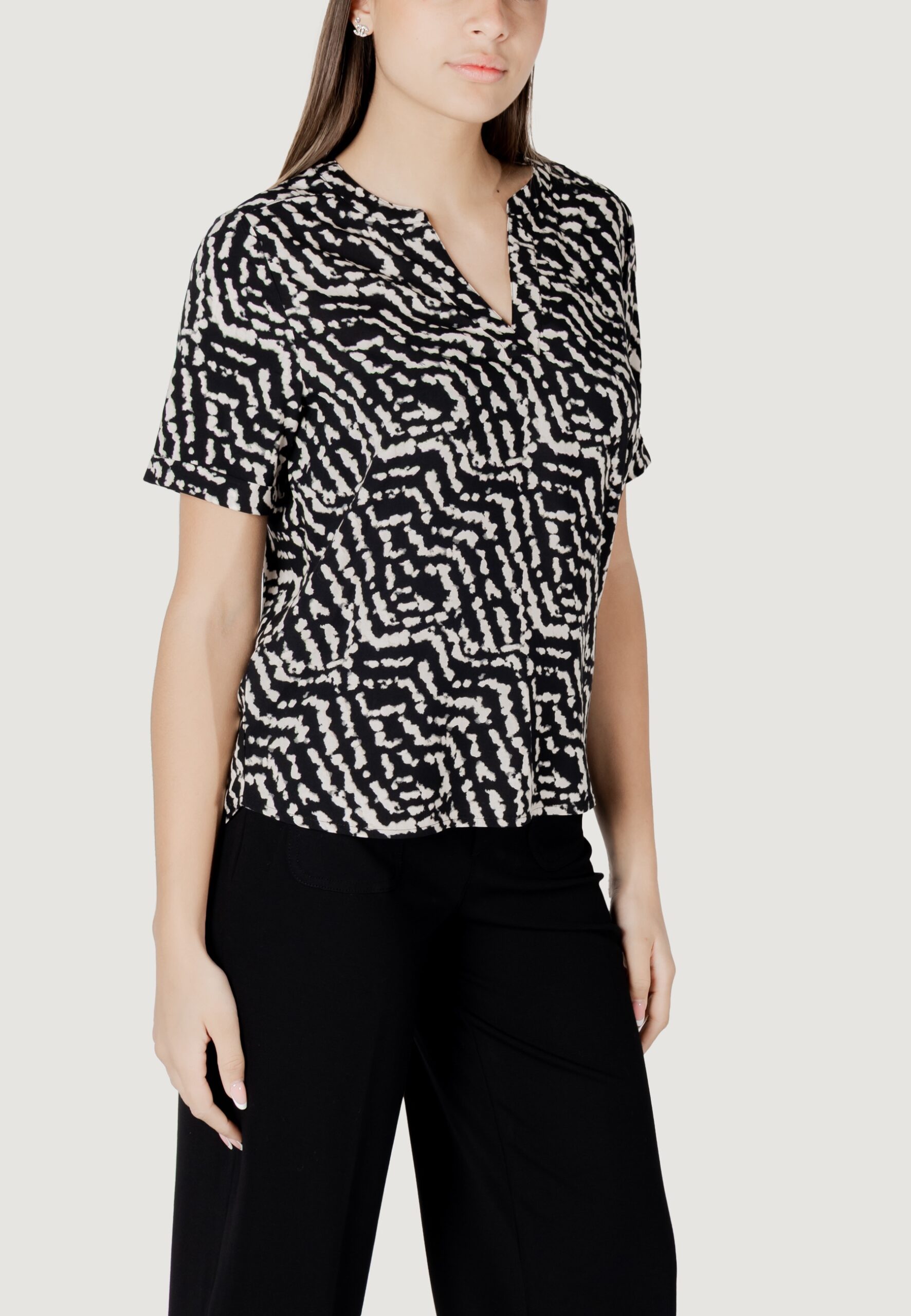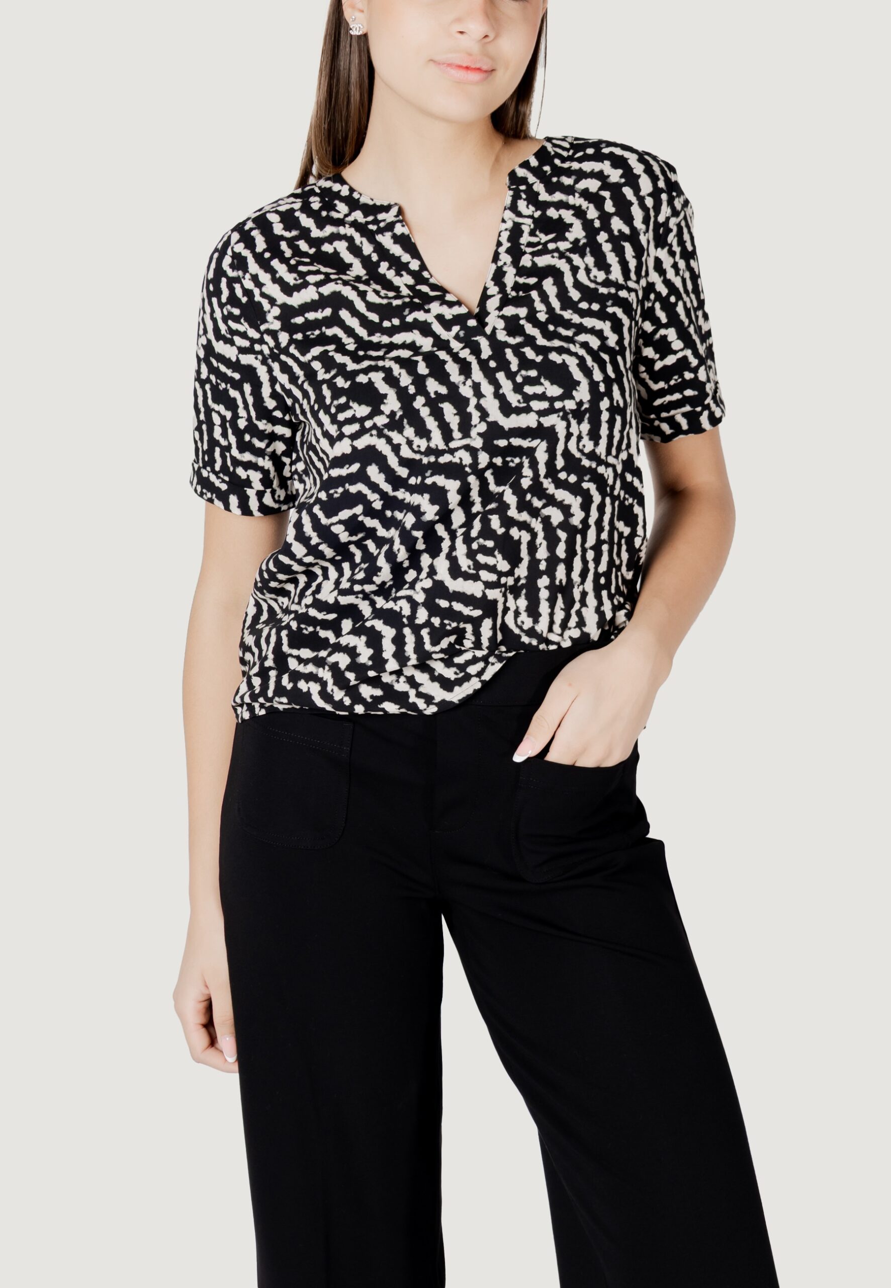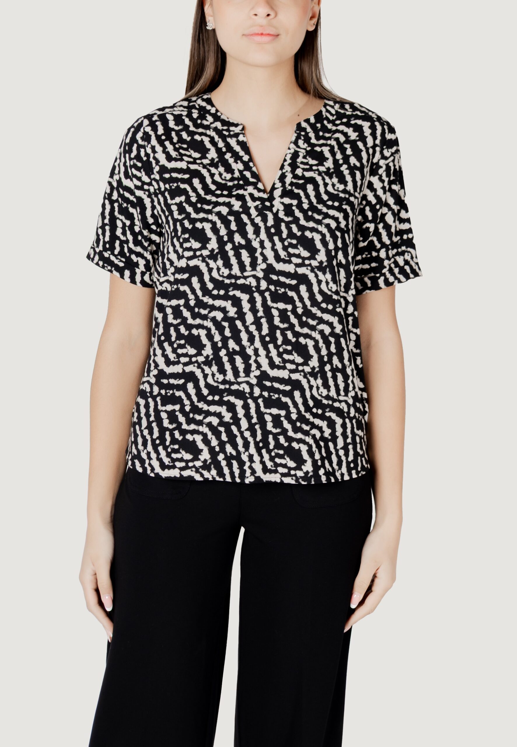 Street One ltd qr splitneck blouse w turn-up Blusa manica corta Donna Nero in vendita su ultimataglia.com | Street One outlet online