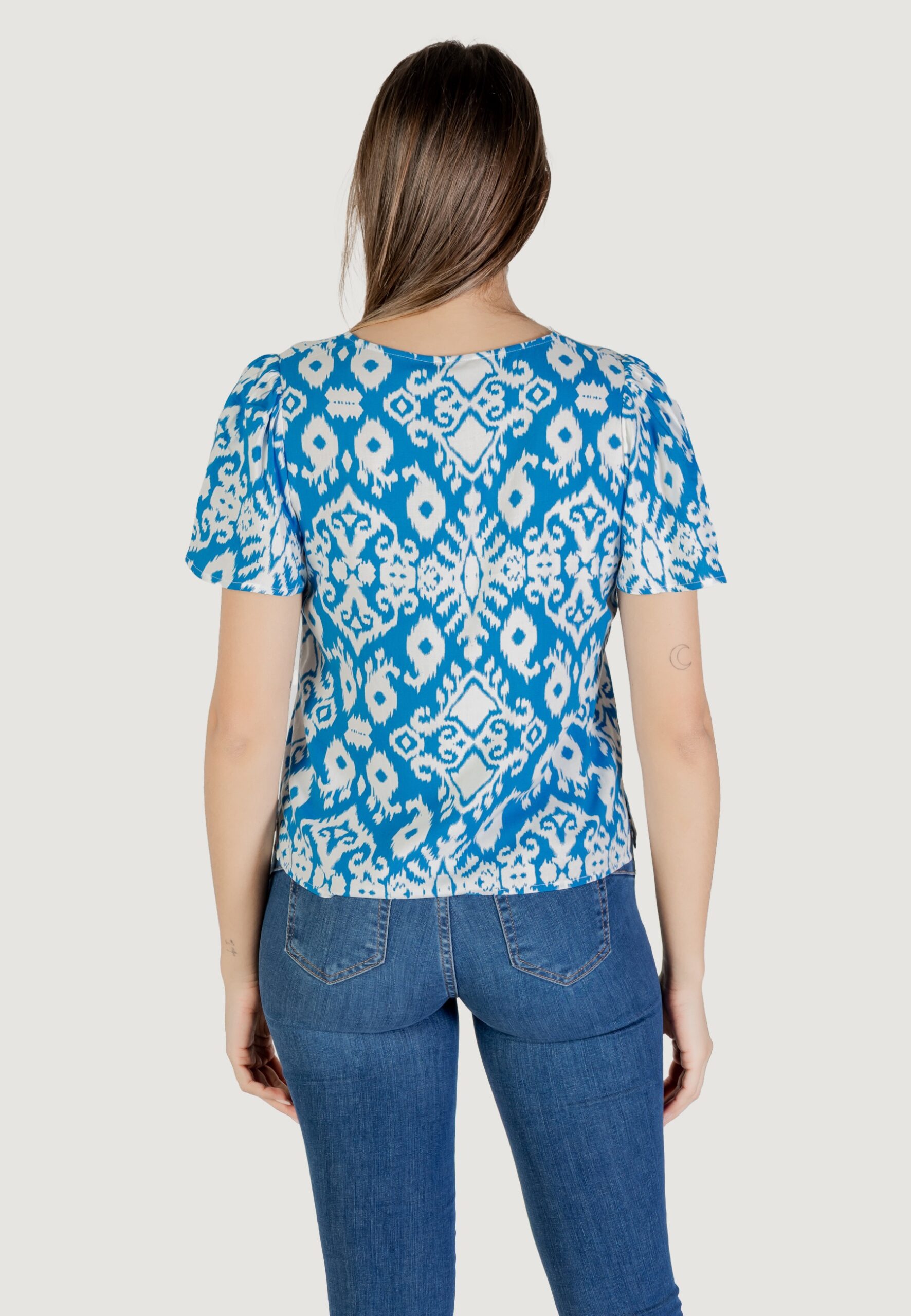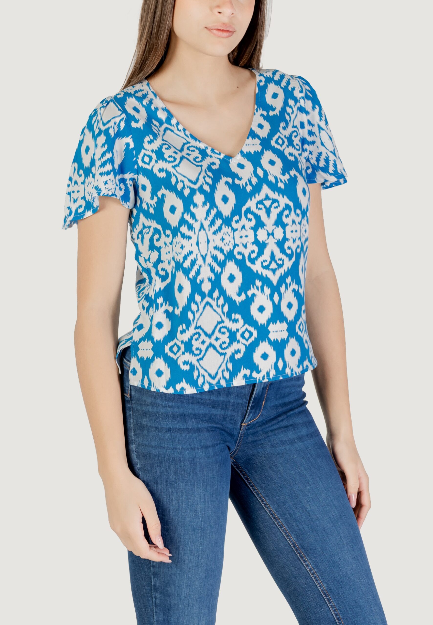 Blusa manica corta Vero Moda vmeasy joy v-neck ss wvn ga Celeste