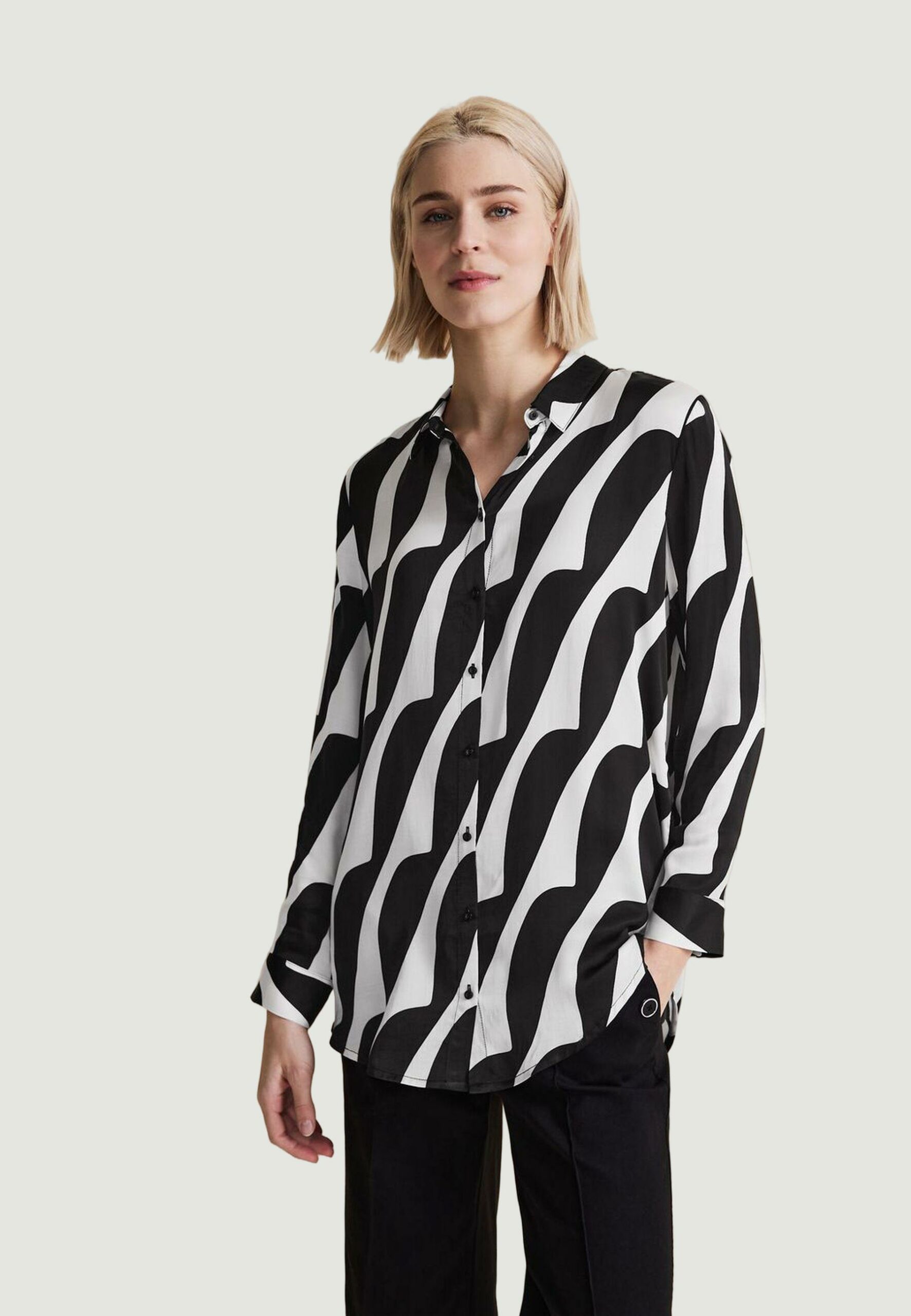 Street One satin Bluse manica lunga Donna Black-White in vendita su ultimataglia.com | Street One outlet online