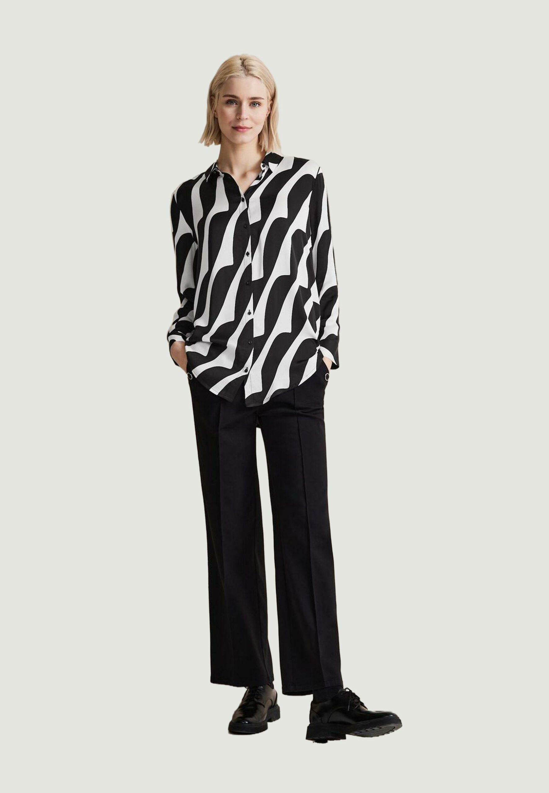 Bluse manica lunga Street One satin Black-White