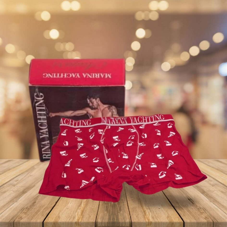 Boxer Marina Yachting MYR344/E da uomo in cotone elasticizzato rosso, con stampa di barchette bianche e fascia logata. Aderente, comodo e perfetto per chi ama uno stile sportivo e pratico. Ottima idea regalo grazie alla confezione elegante e maschile.