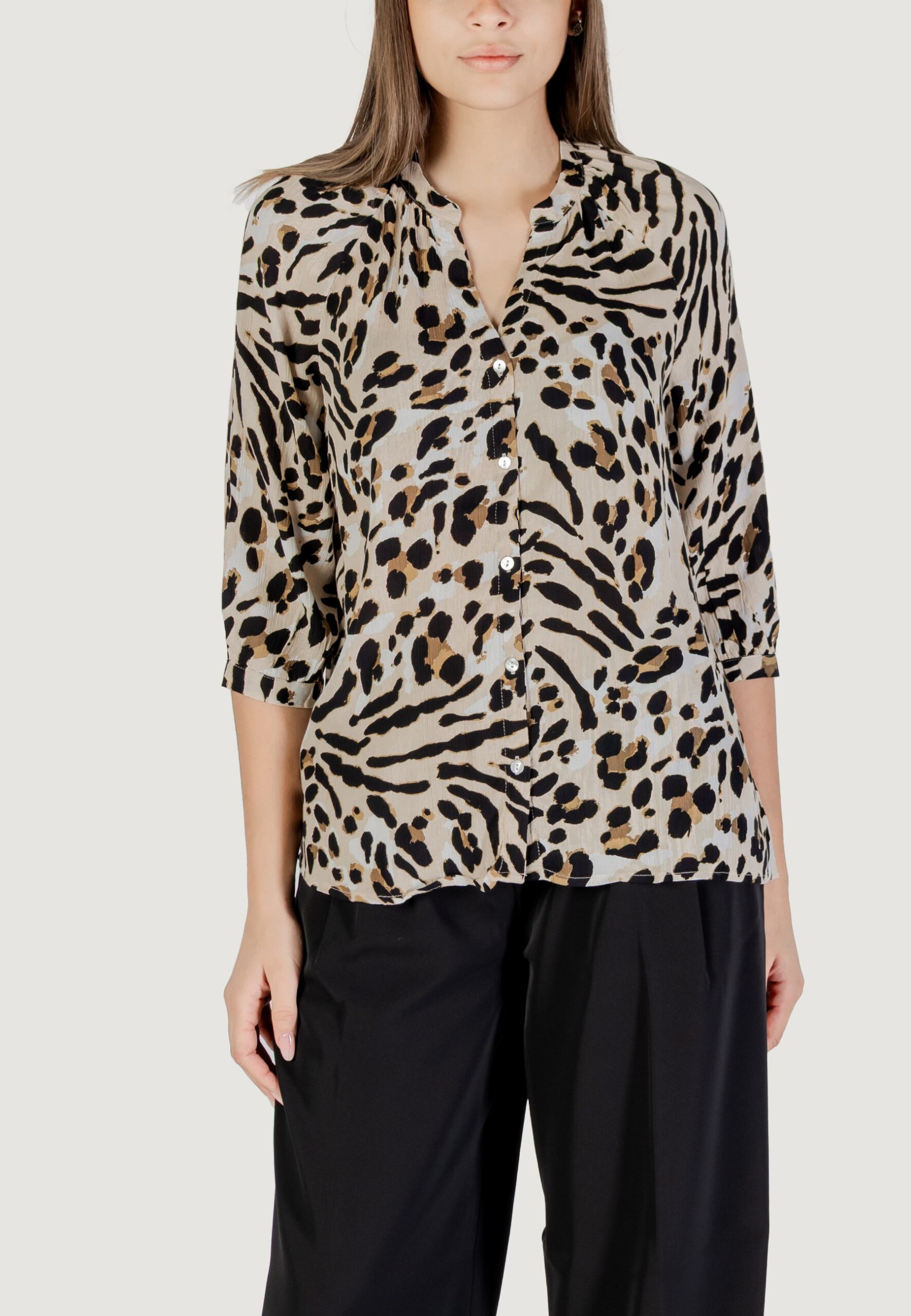 Camicia manica lunga ICHI ihmarrakech aop sh6 Beige