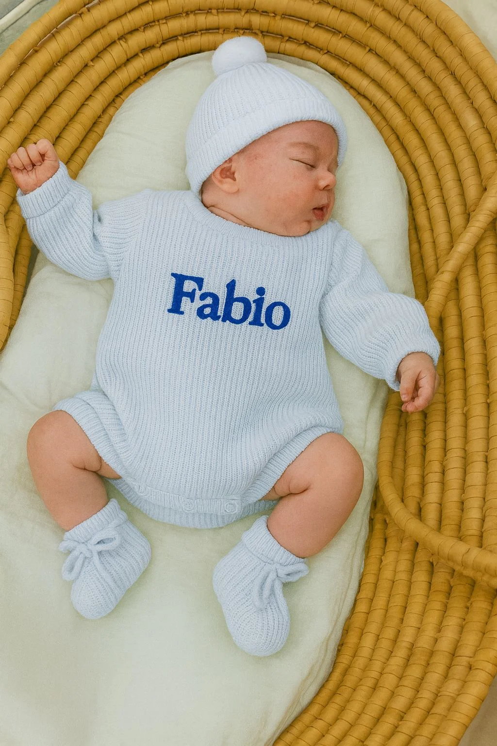 Set con pagliaccetto,cappello e babbucce ,unico e personalizzabile con il nome della tua/o bambina/o racchiuso in una scatola che potrai riutilizzare