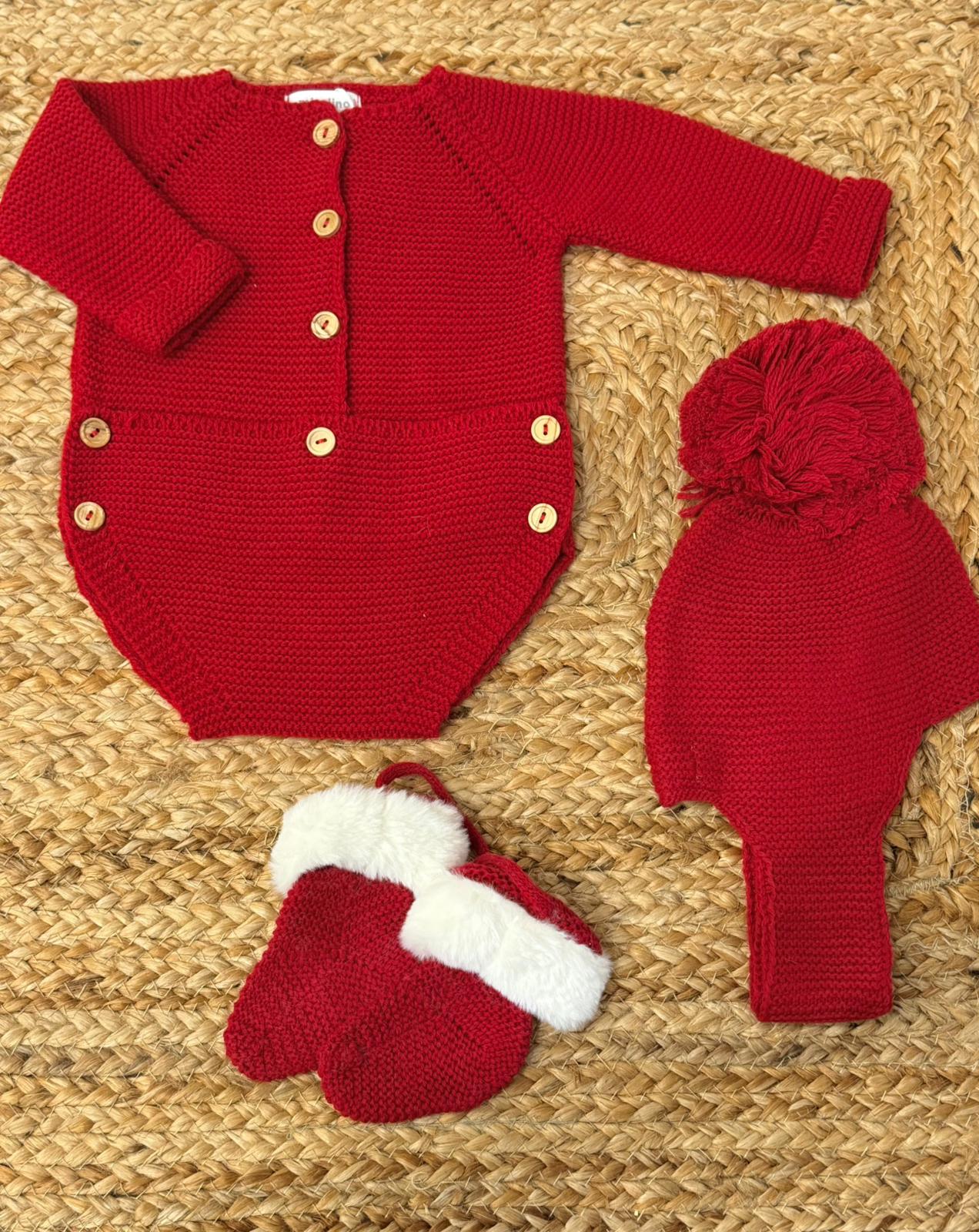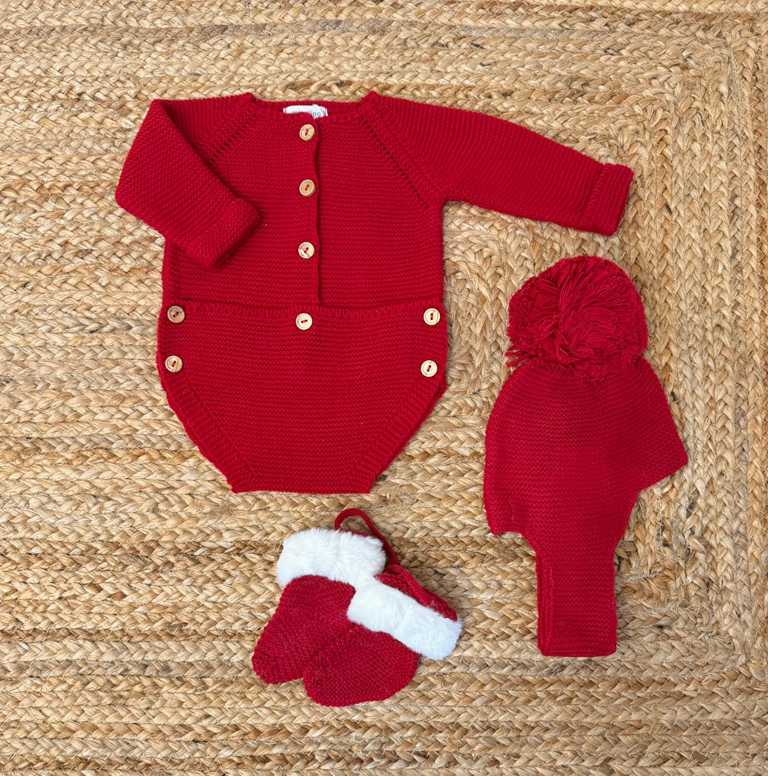 Pagliaccetto con cuffia e babbucce in misto lana