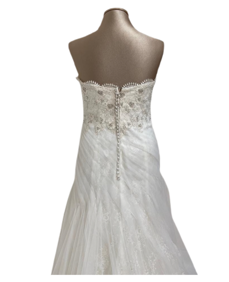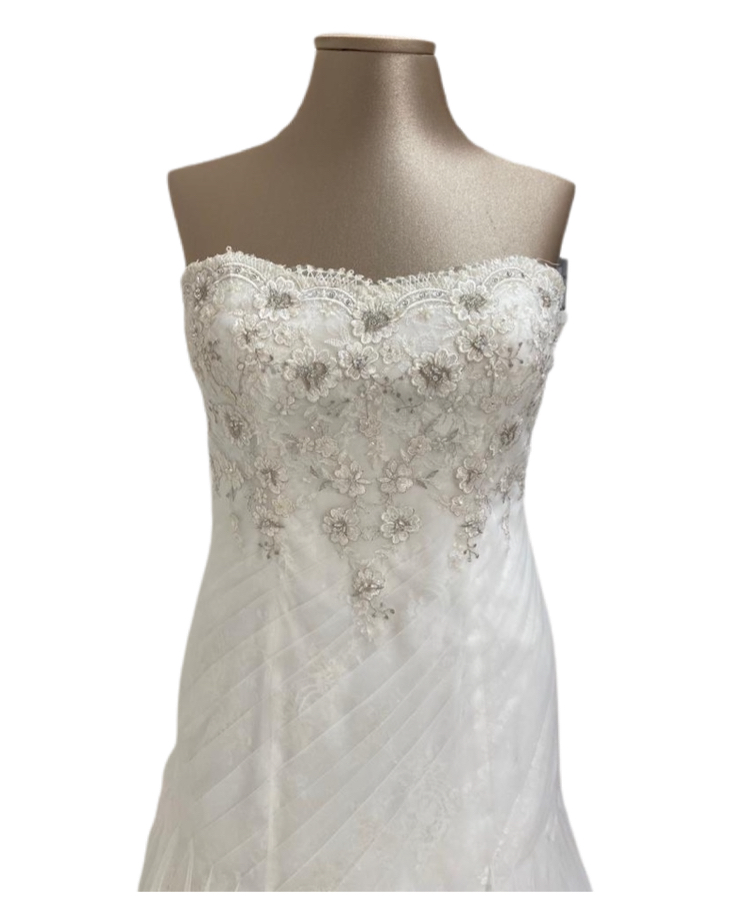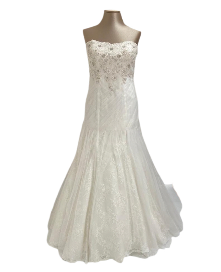 abito sposa mezza sirena con presenza di ricami in fiori 3d