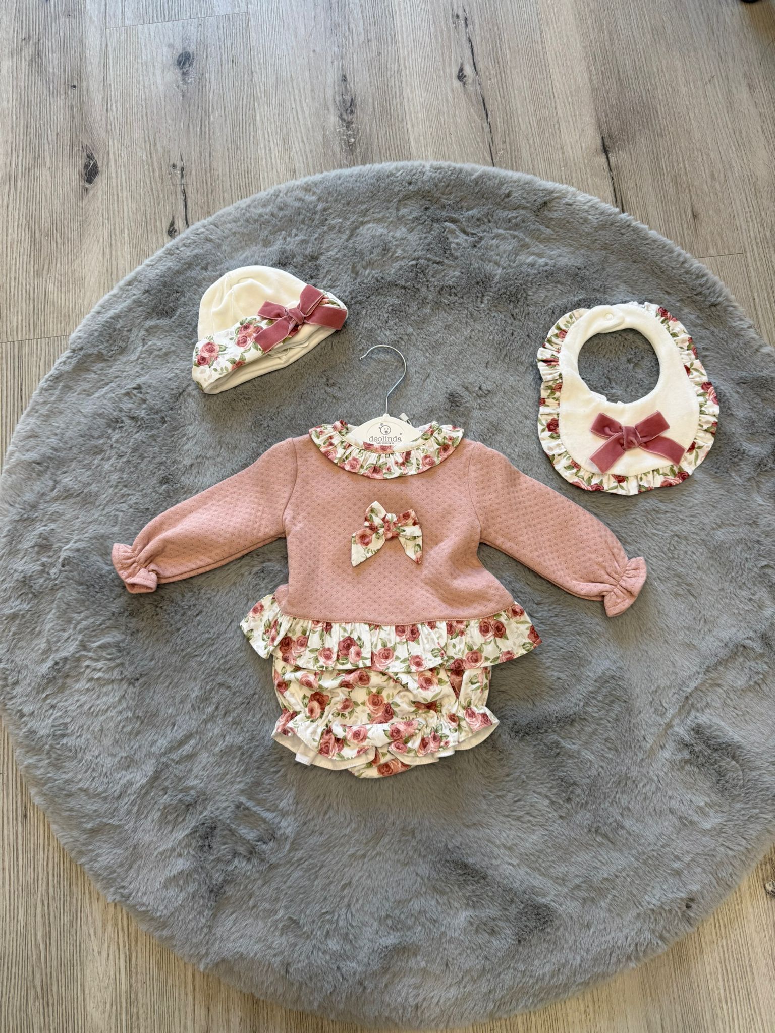 Coordinato Neonata Deolinda 3 pz con Fantasia Floreale – Rosa Antico
