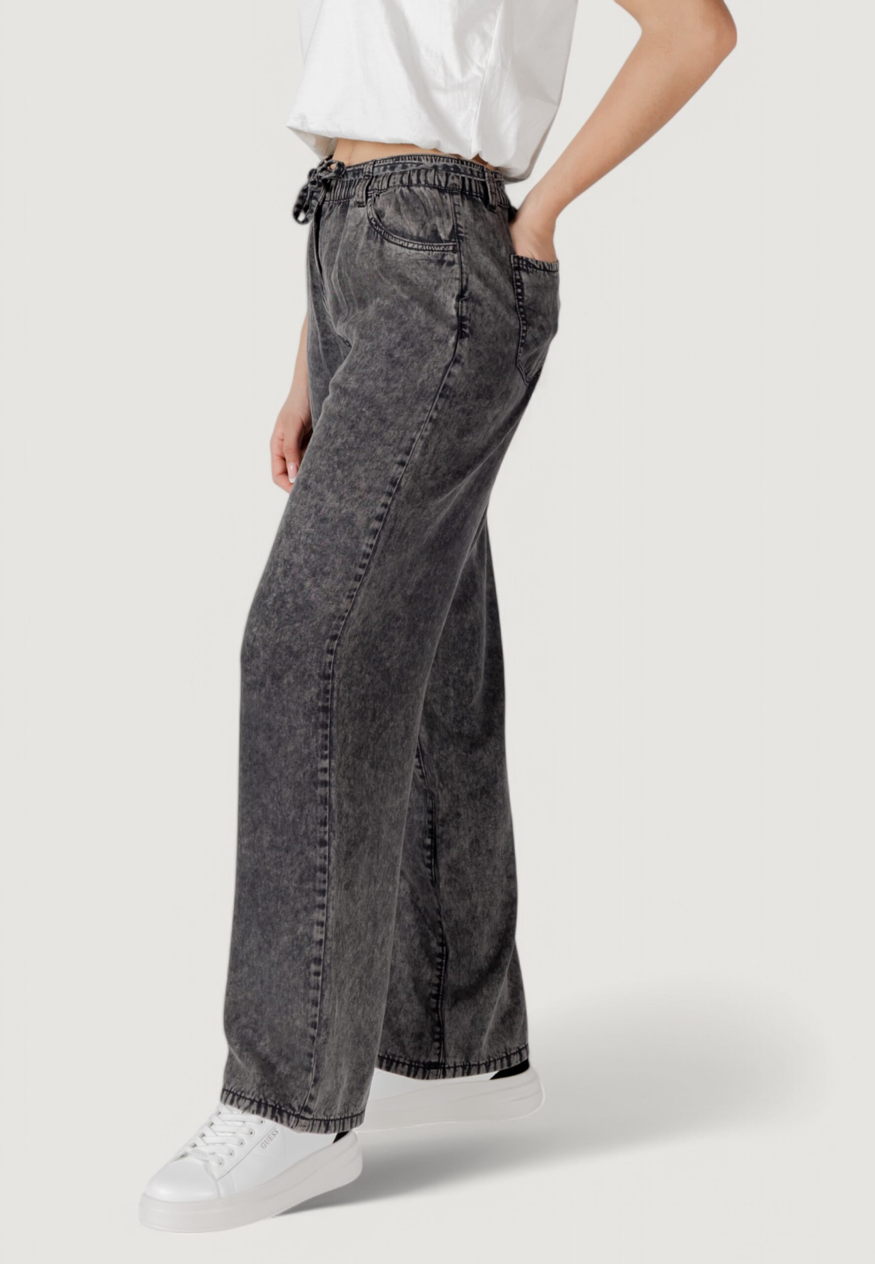 Pantaloni a palazzo Only onlkenya life acid wash pants cc otw Nero