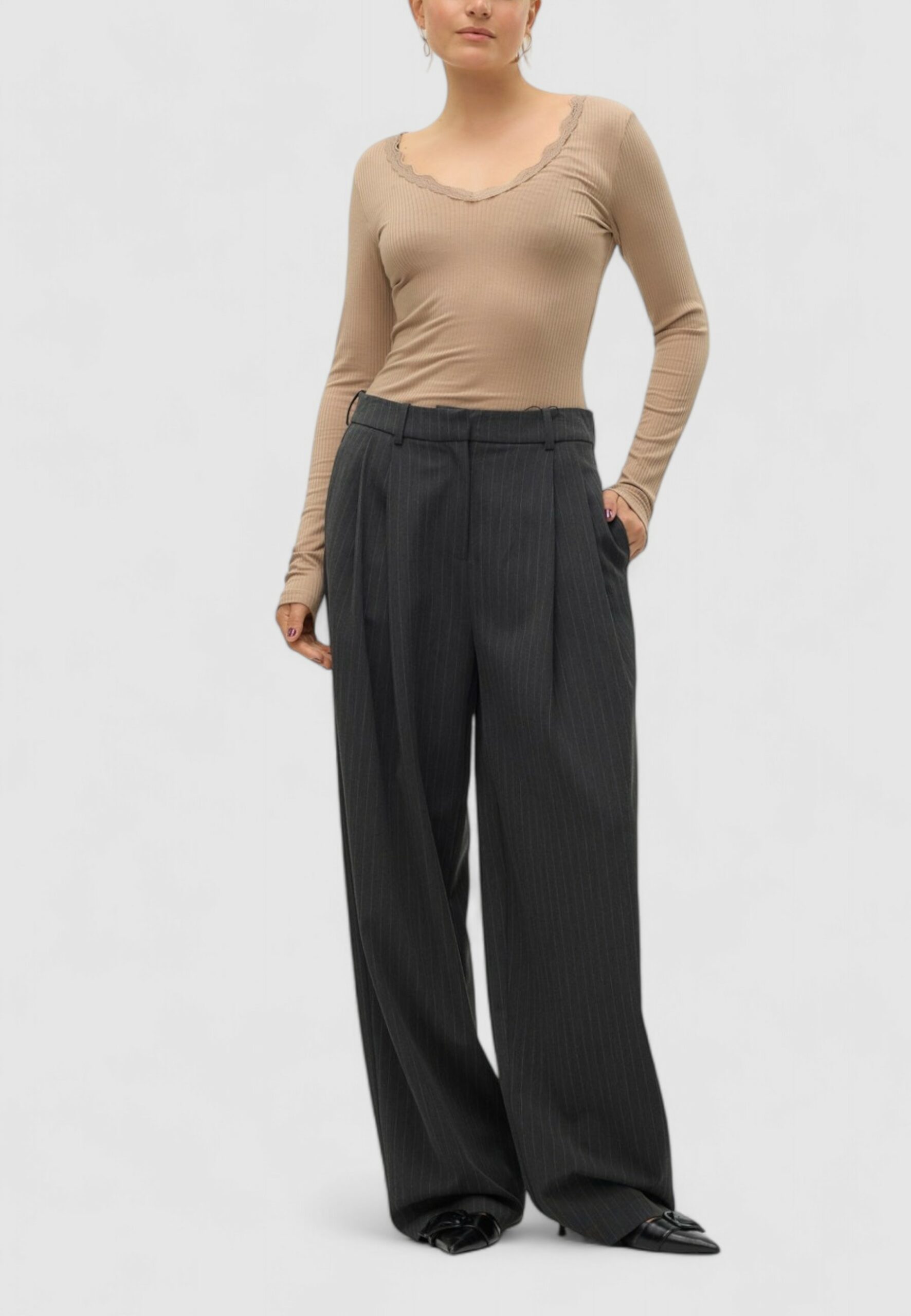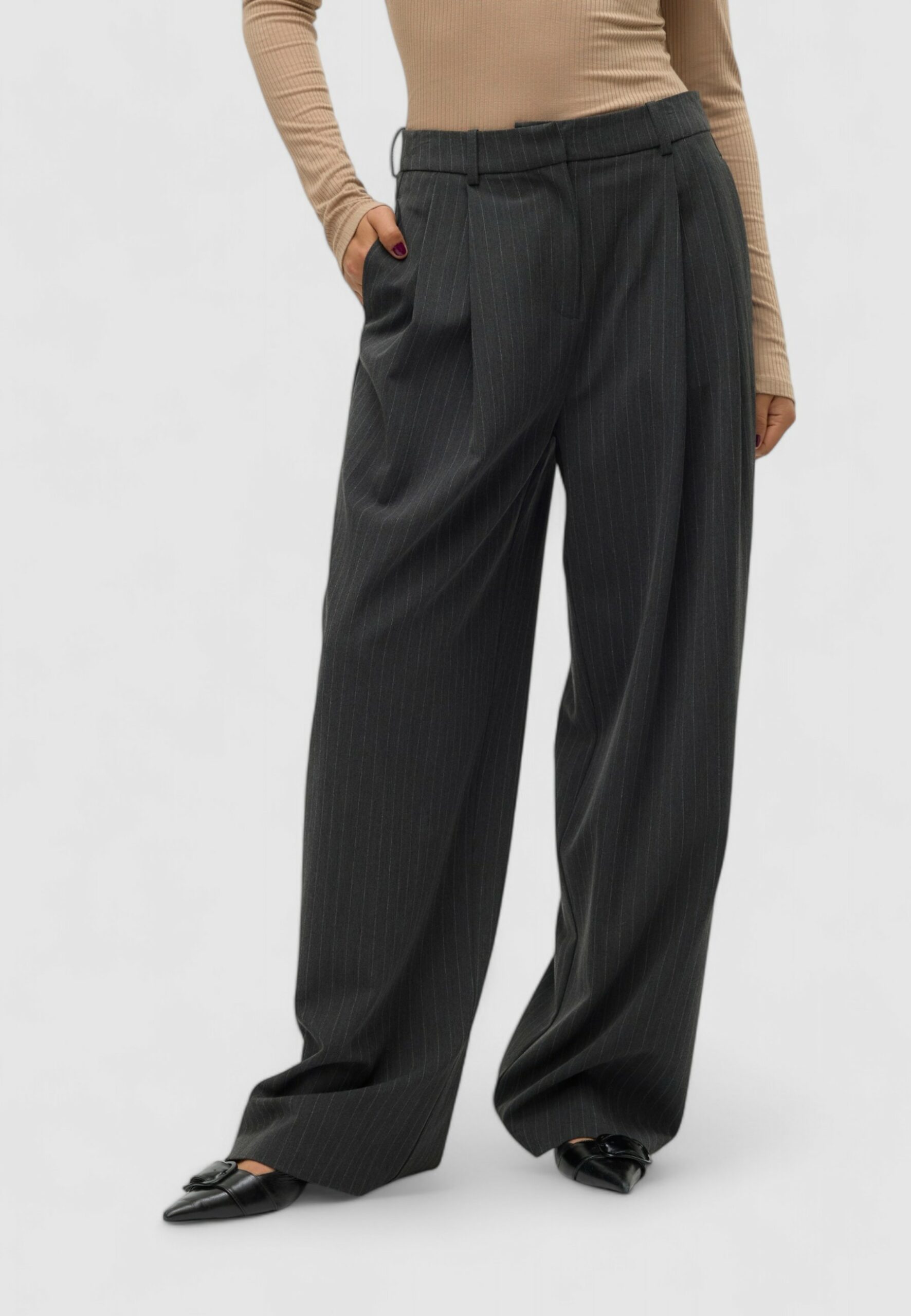 Vero Moda vmsilje mw wide pinstripe pants Pantaloni a palazzo Donna Grigio Scuro in vendita su ultimataglia.com | Vero Moda outlet online