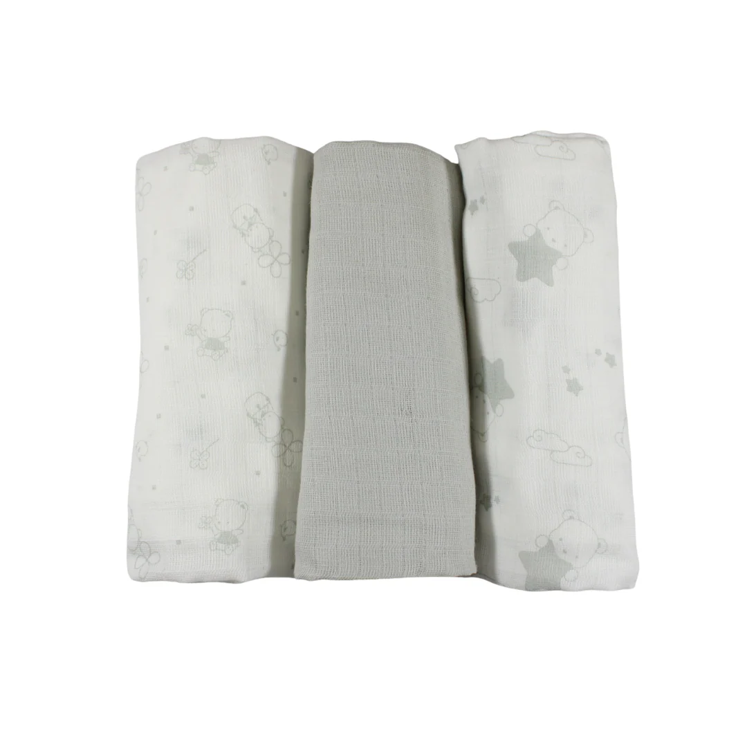Coccola il vostro piccolo con i nostri tris di garza per neonati, disponibili in confezione da 3 pezzi. Realizzati al 100% in cotone, i quadrati sono morbidi e delicati sulla pelle del vostro bambino. Disponibili nei colori bianco e grigio, questa taglia unica è perfetta per coccolare il vostro neonato.