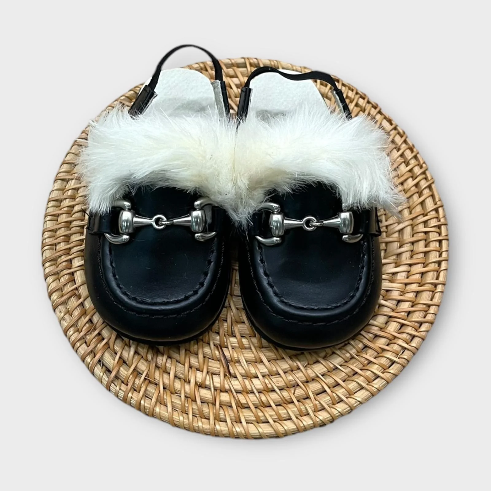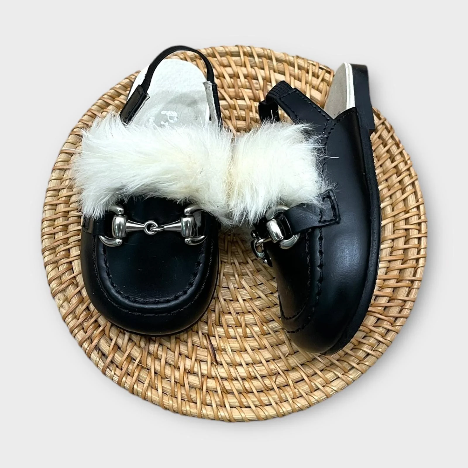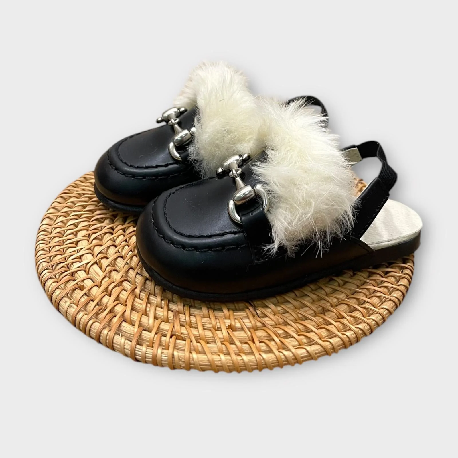 sabot in pelle con pelliccia ed elastico
