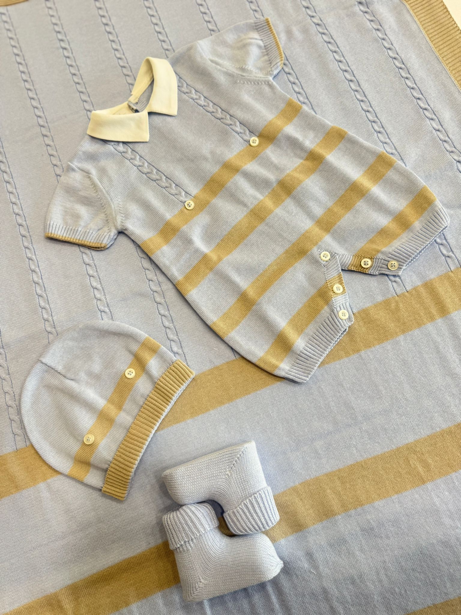 Set corredino nascita e uscita in filo 100% italiano per neonato 4pz a tua scelta 1 set coperta + cappello + scarpe + tutina maniche corte 2 set coperta + cappello + scarpe + completo maniche lunghe