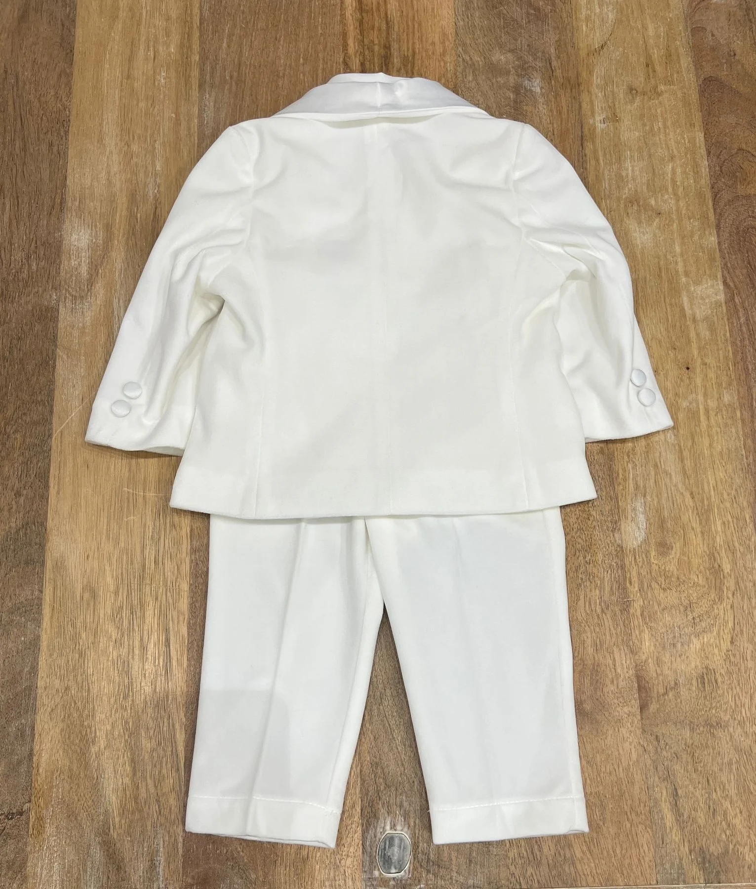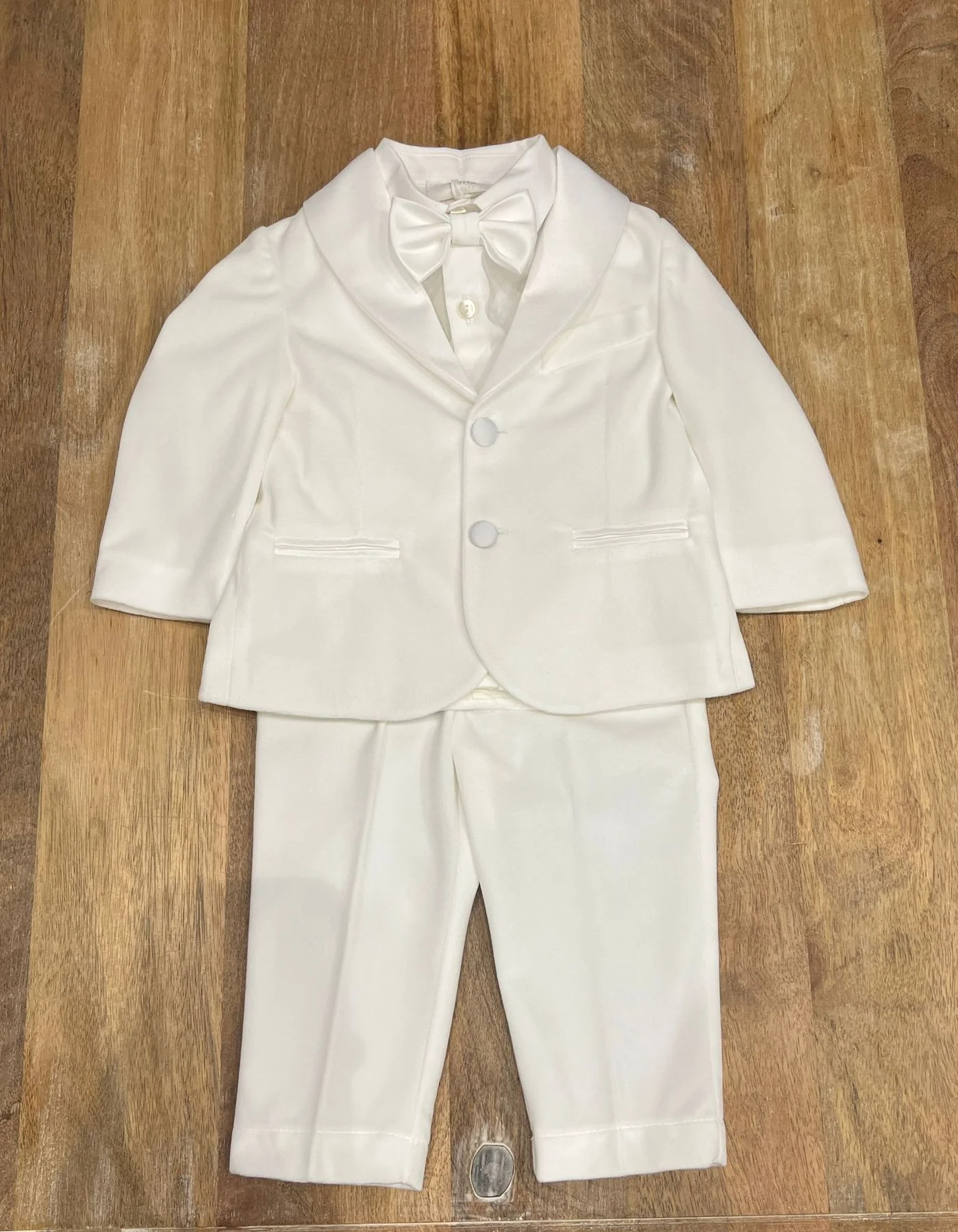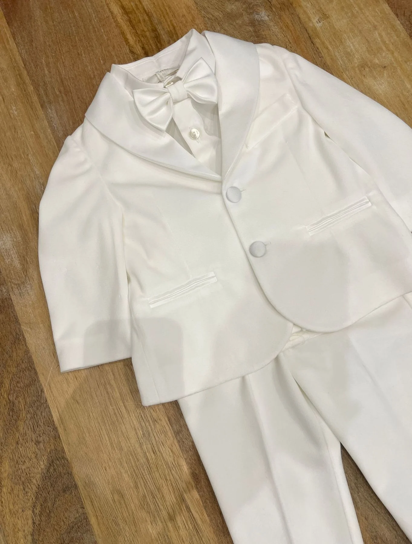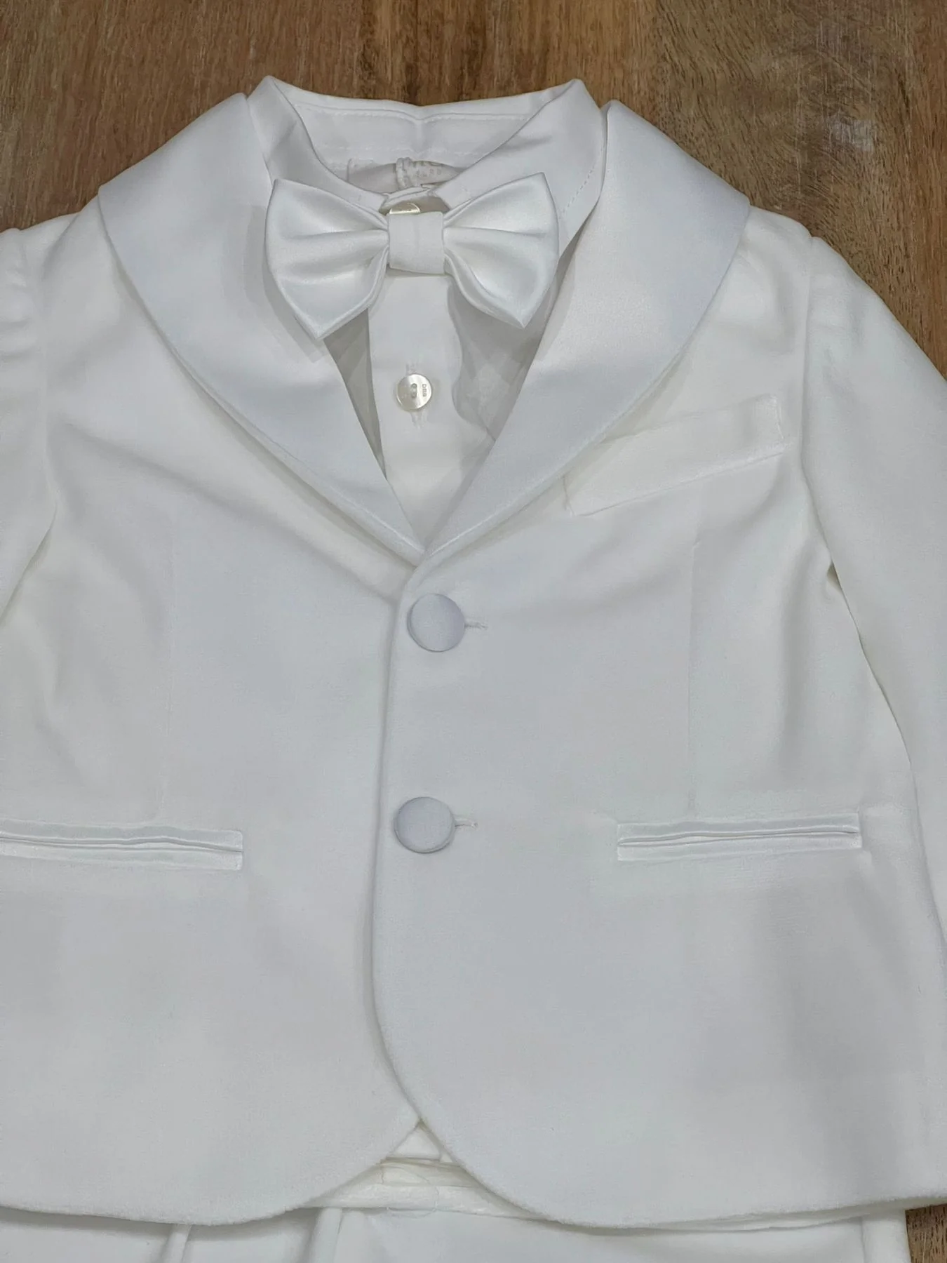 Completo elegante con bretelle e papillon Bianco e blu navy