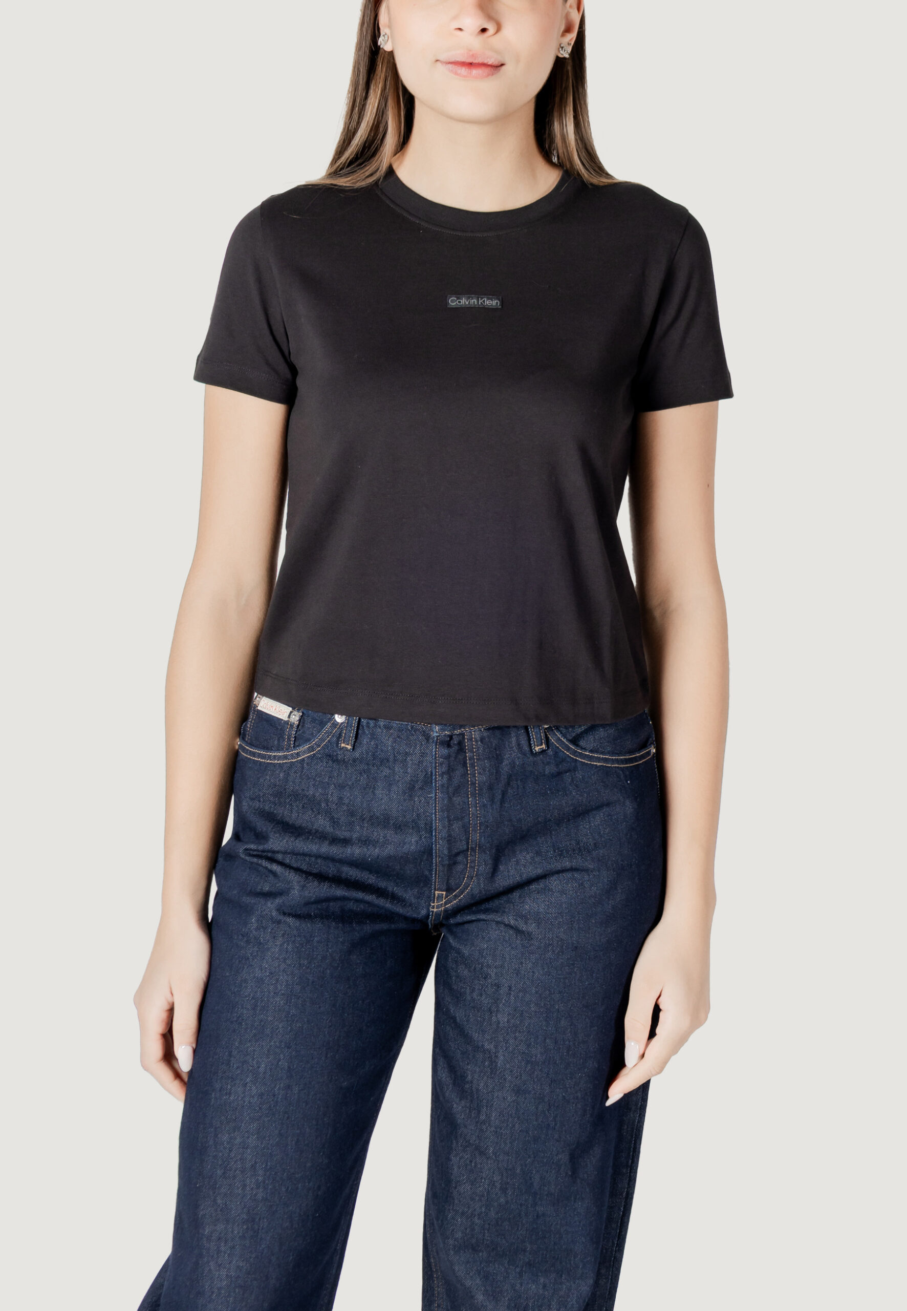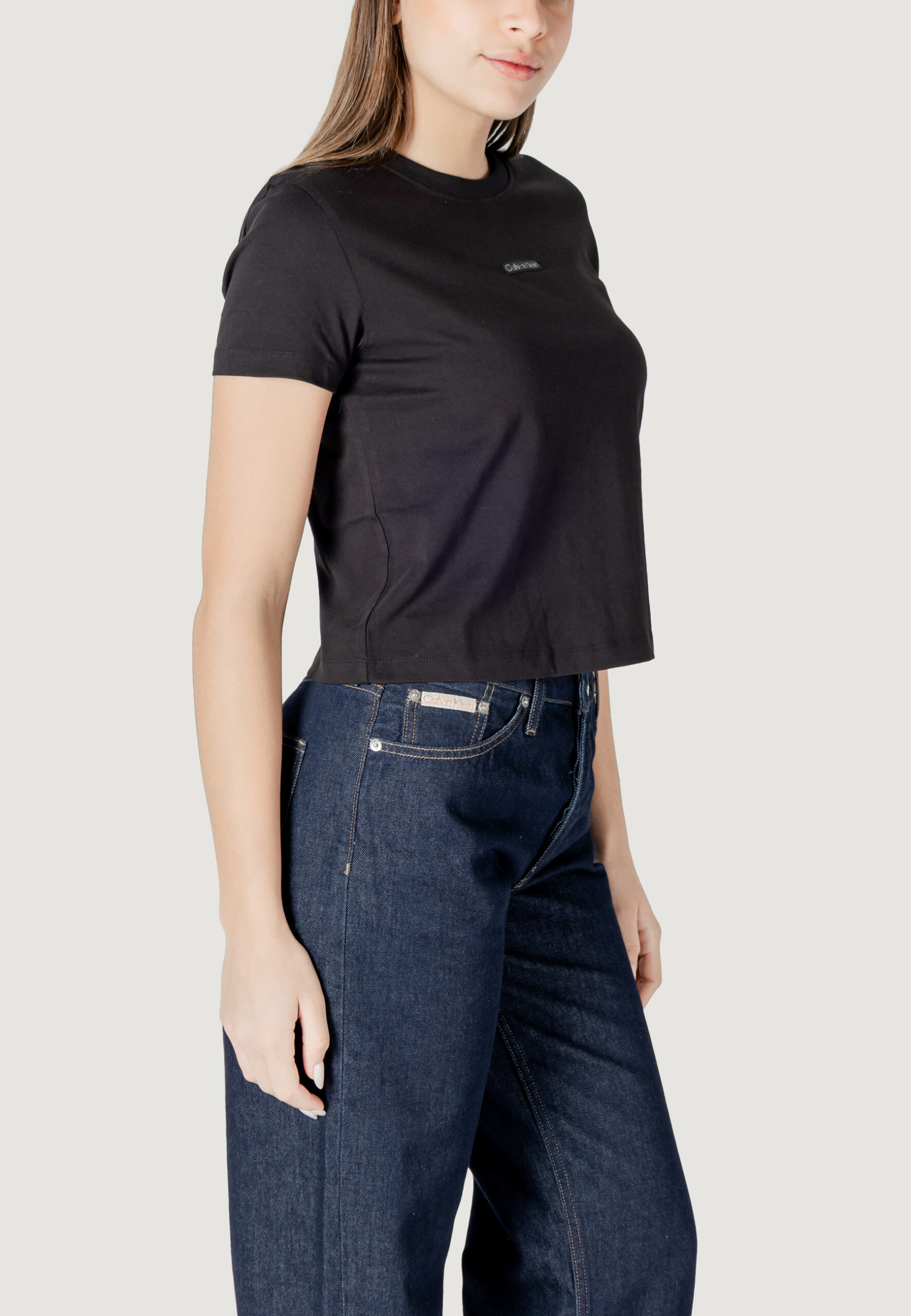Calvin Klein Jeans placed institutional T-shirt Donna Nero in vendita su ultimataglia.com | Calvin Klein Jeans outlet online