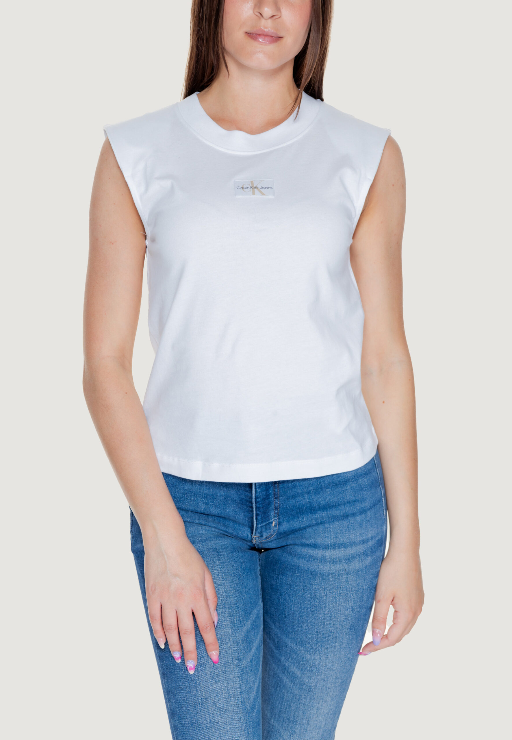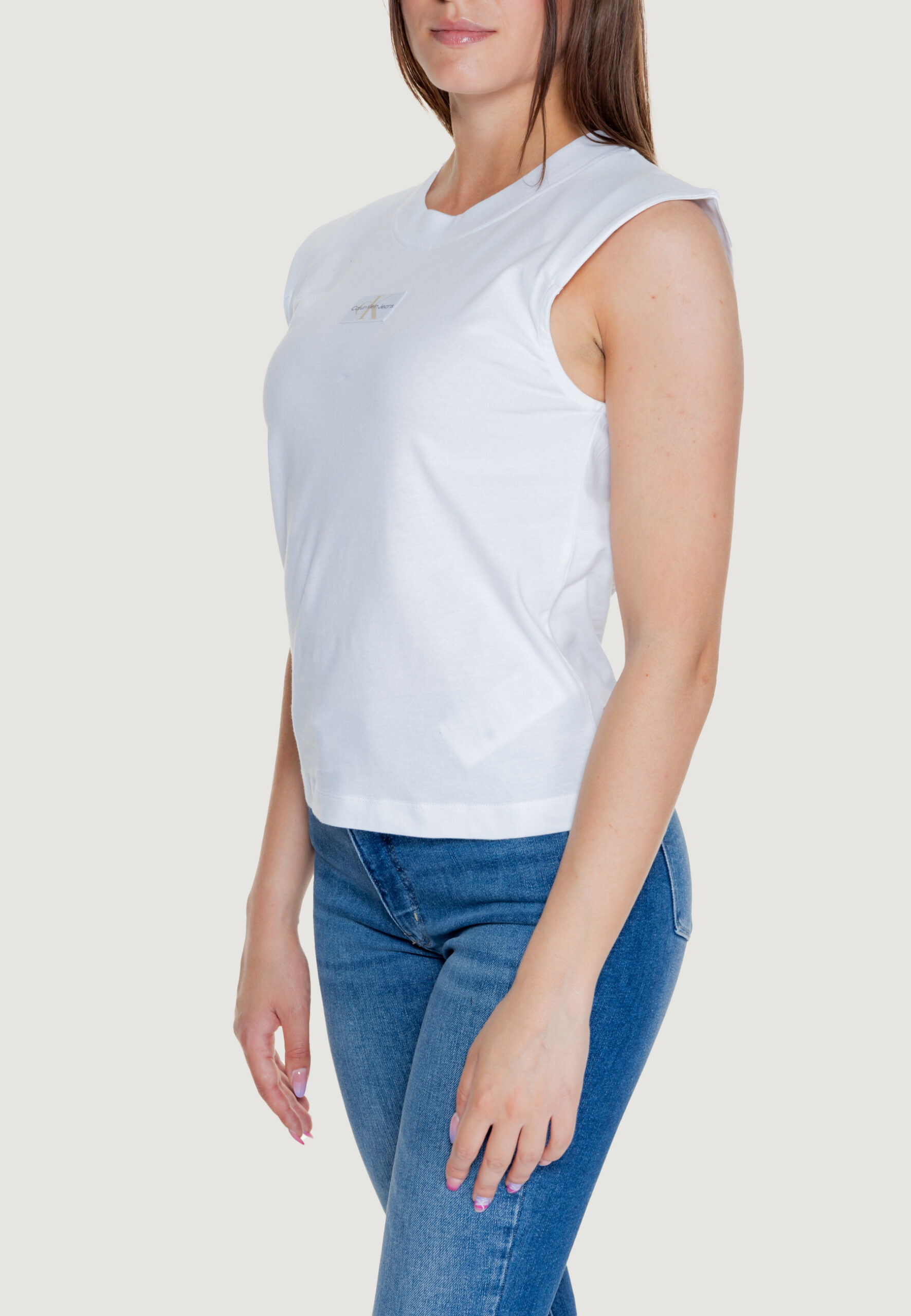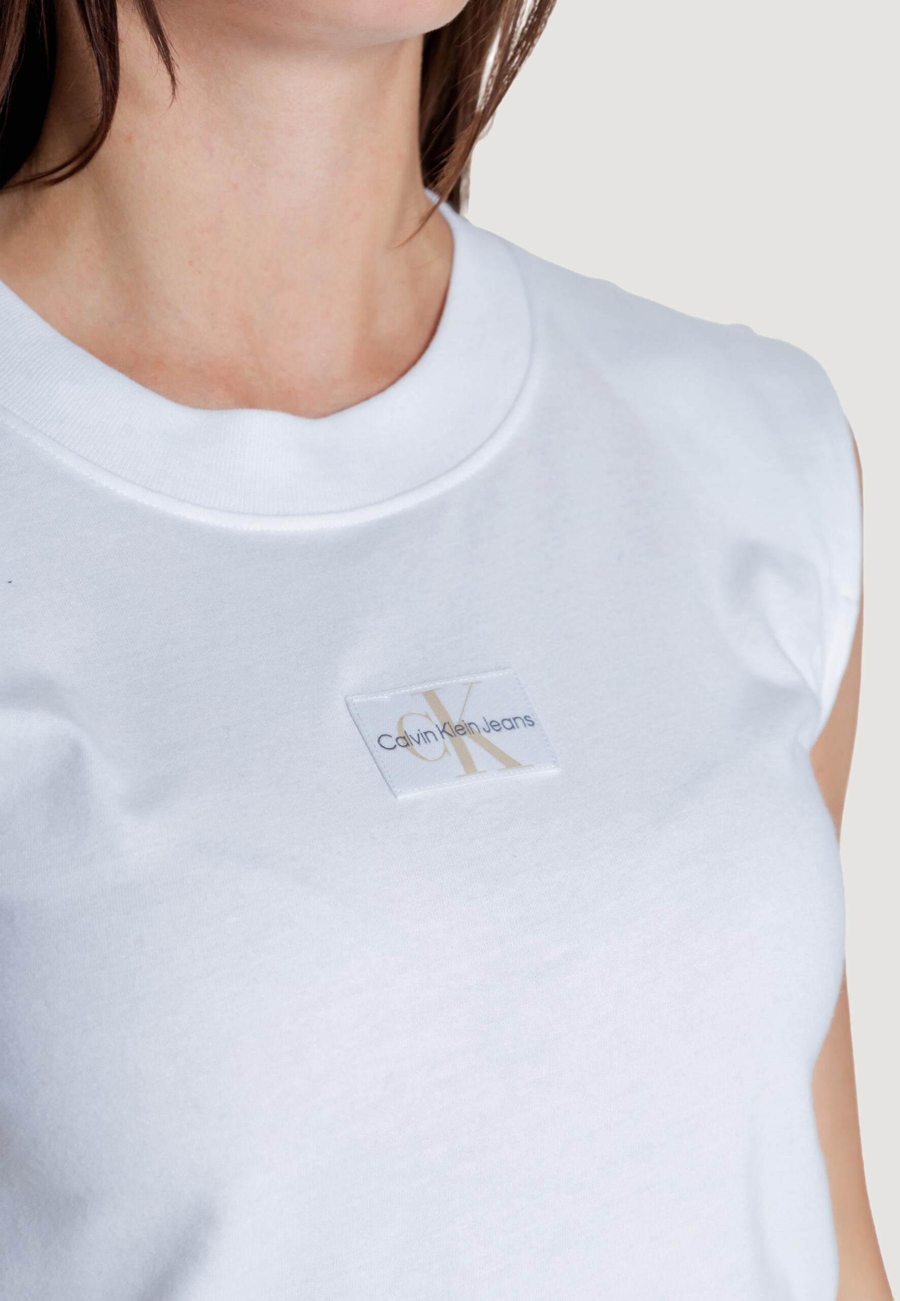 Calvin Klein Jeans woven label loose T-shirt Donna Bianco in vendita su ultimataglia.com | Calvin Klein Jeans outlet online