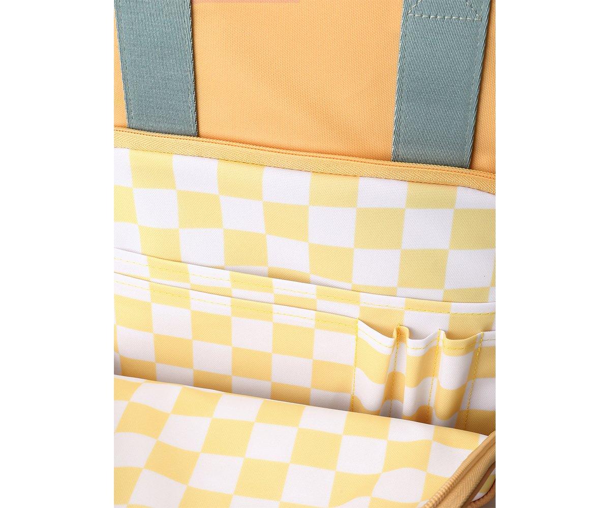 Ha una tasca frontale per gli oggetti più piccoli e tasche laterali in rete per le bottiglie